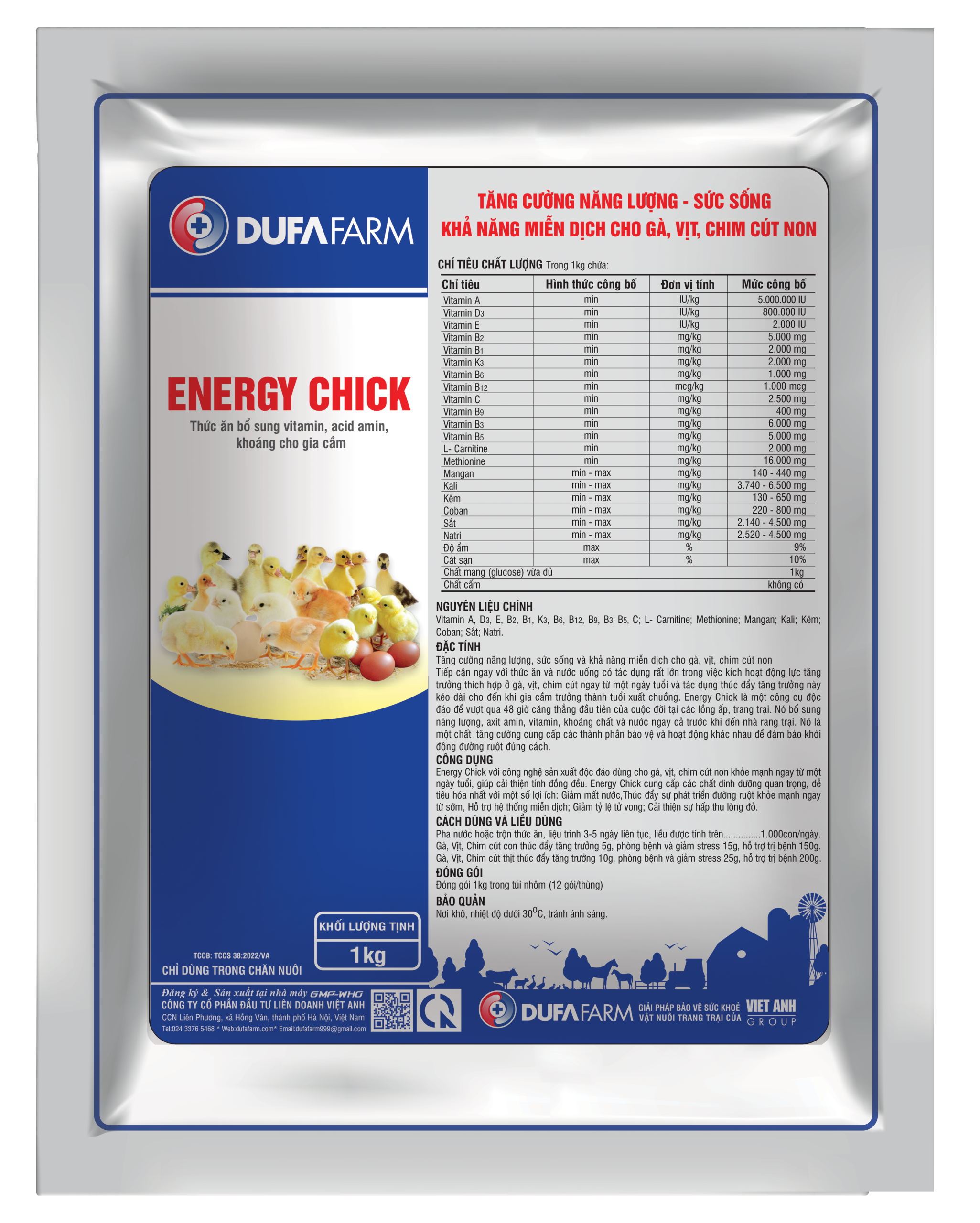 Energy Chick với công nghệ sản xuất độc đáo dùng cho gà, vịt, chim cút non khỏe mạnh ngay từ một ngày tuổi, giúp cải thiện tính đồng đều. Energy Chick cung cấp các chất dinh dưỡng quan trọng, dễ tiêu hóa nhất với một số lợi ích: Giảm mất nước,Thúc đẩy sự phát triển đường ruột khỏe mạnh ngay từ sớm, Hỗ trợ hệ thống miễn dịch; Giảm tỷ lệ tử vong; Cải thiện sự hấp thụ lòng đỏ.